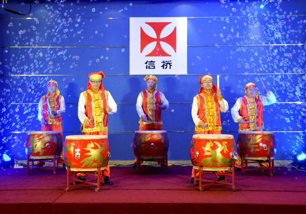 晚會在開場鼓中拉開序幕,高亢的歌曲,精彩的反串表演,激情的笛子獨(dú)奏等節(jié)目,特別是“信橋之歌”展現(xiàn)了信橋人積極奮進(jìn)的精神風(fēng)貌。周年慶的創(chuàng)意蛋糕上“專業(yè)”“做精”也展現(xiàn)了信橋公司的市場經(jīng)營理念。