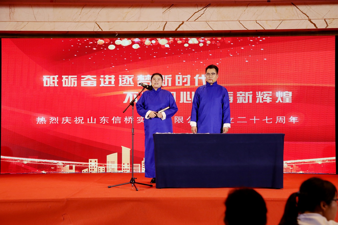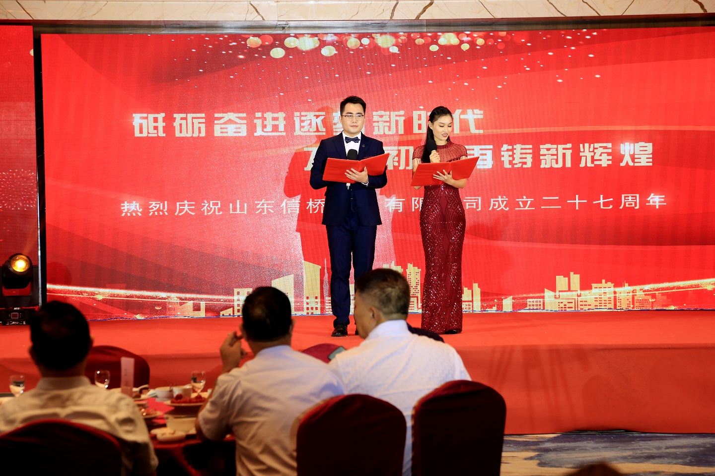 歲月如歌,風(fēng)霜如畫,二十七年彈指一揮間,山東信橋?qū)崢I(yè)有限公司(以下簡稱山東信橋)迎來了二十七周年的生日。二十七年來,信橋人在激烈的市場競爭中奮力拼搏、砥礪前行,接受了市場風(fēng)風(fēng)雨雨的洗禮,取得了累累碩果。為了慶祝這一特殊的日子,2021年8月8日,以“拼搏進(jìn)取,開創(chuàng)新時代”為主題的山東信橋二十七周年慶典活動在寶盛大酒店舉行。