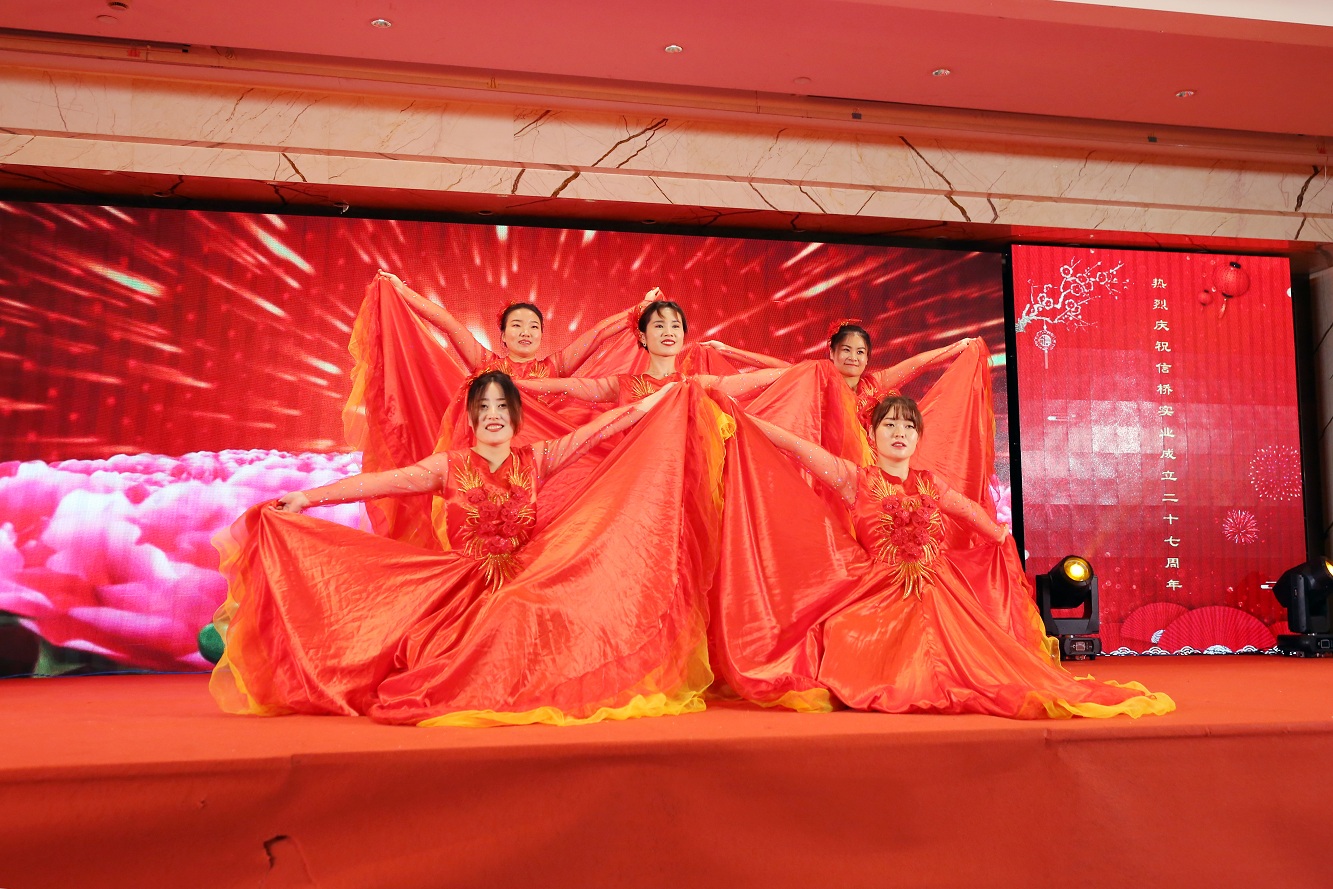 此次慶典晚宴參加人員除了信橋全體員工之外,還有部分老領(lǐng)導(dǎo)和老朋友,大家共同分享了信橋二十七周年的喜悅與精彩。八號上午,慶典開始之前,演員們辛勤排練,燈光師、音響師共同配合,所有人為了晚會都在努力。下午4點(diǎn)58分,晚會正式開始,全體員工與領(lǐng)導(dǎo)集體合影,信橋隊伍不斷在擴(kuò)大。今年的晚會添加新的互動方式,采用了直播和紅包雨的新形式,是信橋周年慶典的一次新的嘗試。
