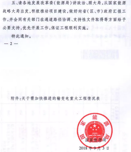 9月7日獲悉,國家能源局印發(fā)《關(guān)于加快推進(jìn)一批輸變電重點(diǎn)工程規(guī)劃建設(shè)工作的通知》國能發(fā)電力〔2018〕70號,《通知》指出,為加大基礎(chǔ)設(shè)施領(lǐng)域補(bǔ)短板力度,發(fā)揮重點(diǎn)電網(wǎng)工程在優(yōu)化投資結(jié)構(gòu)、清潔能源消納、電力精準(zhǔn)扶貧等方面的重要作用,加快推進(jìn)青海至河南特高壓直流、白鶴灘至江蘇、白鶴灘至浙江特高壓直流等9項(xiàng)重點(diǎn)輸變電工程建設(shè),合計輸電能力5700萬千瓦(工程見附件)。
