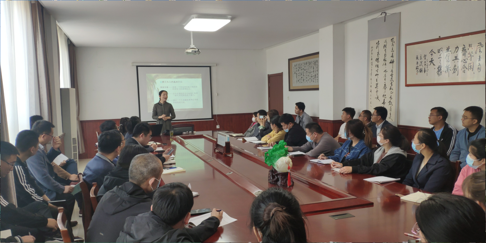 5月5號,為提高公司整體形象,提高員工業(yè)務水平,公司請禮儀老師來公司培訓,經過老師的講解,公司開始實施全體員工著裝得體的政策,周一至周五全部著西裝、皮鞋。