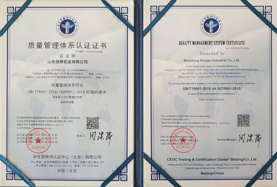 質(zhì)量管理體系認(rèn)證證書